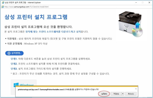 - 다운로드가 완료되면 파일을 저장한 위치를 확인합니다. 다운로드한 파일은 'SamsungPrinterInstaller.exe'라는 이름일 것입니다.