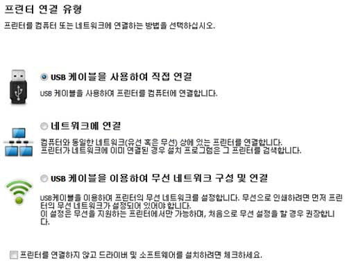 각 연결 방법에서 프린터와 컴퓨터 간의 연결상태를 확인하며 진행하면 됩니다.