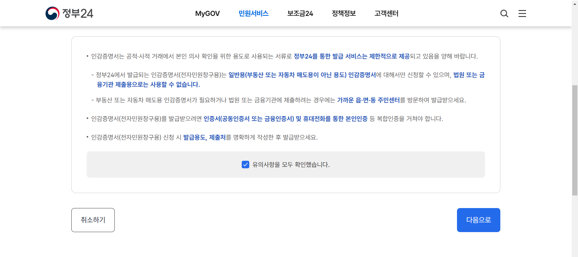 발급 시 유의사항