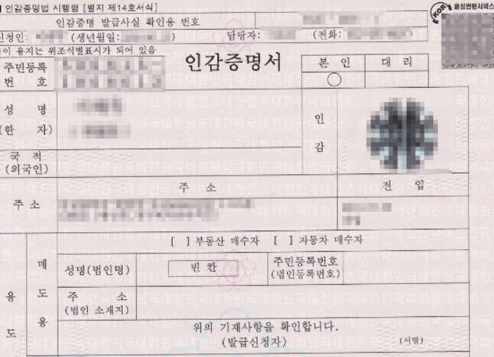 - 보안: 발급받은 인감증명서는 소중히 보관해야 하며, 타인에게 함부로 제공해서는 안 됩니다.