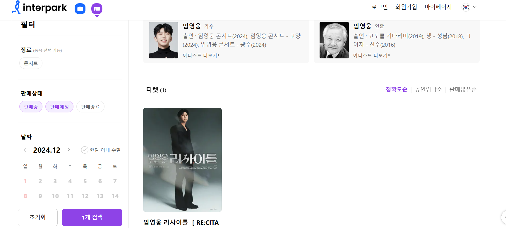 1] 인터파크 티켓 - 임영웅 (https://tickets.interpark.com/search?keyword=%EC%9E%84%EC%98%81%EC%9B%85)