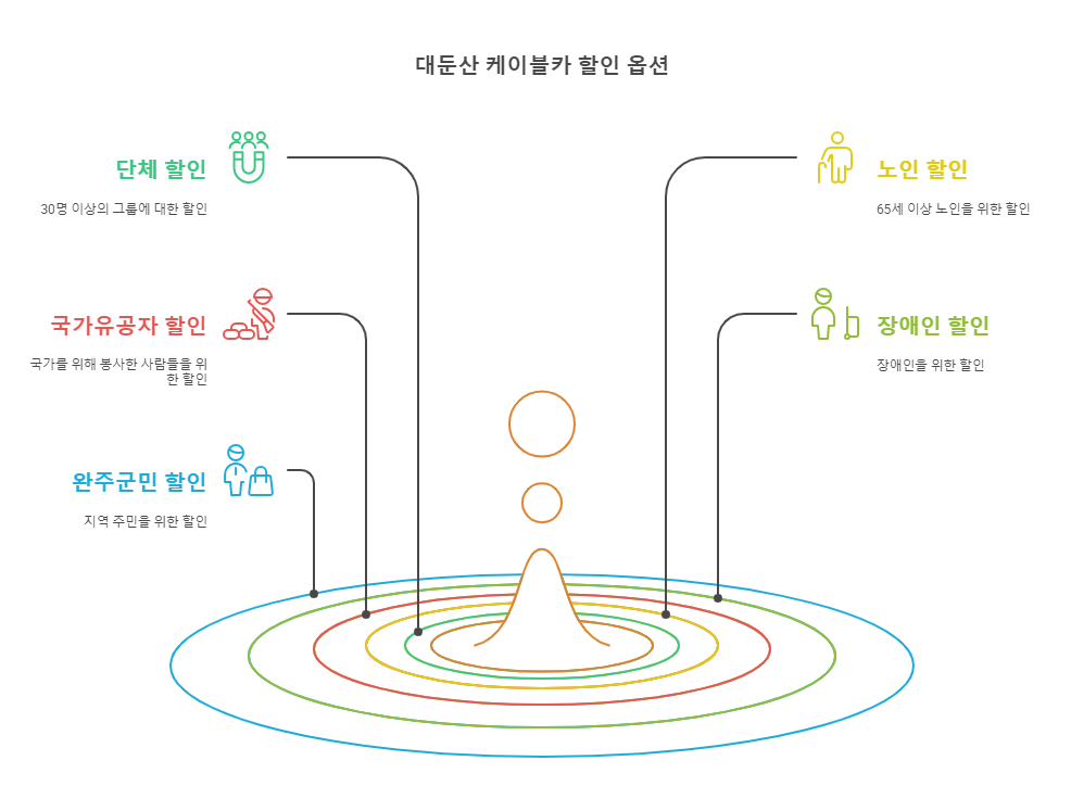 대둔산 케이블카에서는 다음과 같은 조건에 해당하는 경우 할인을 받을 수 있습니다: