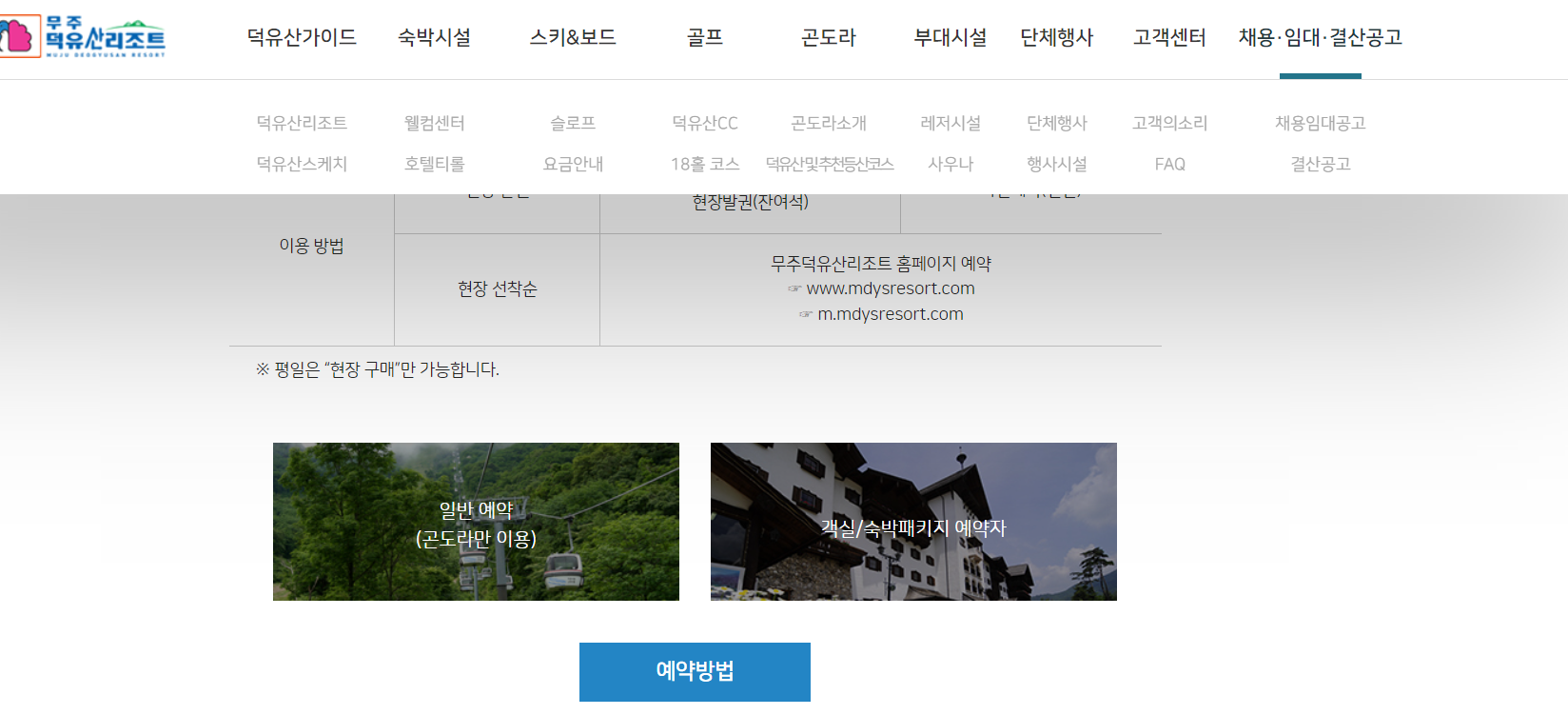 - 무주 덕유산리조트 공식 홈페이지(www.mdysresort.com) 접속