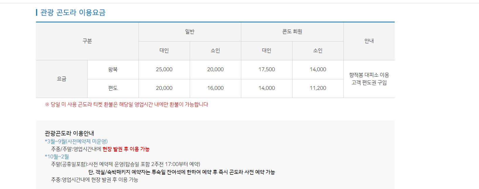 - '곤도라' 메뉴 → '관광곤도라 예약' 선택