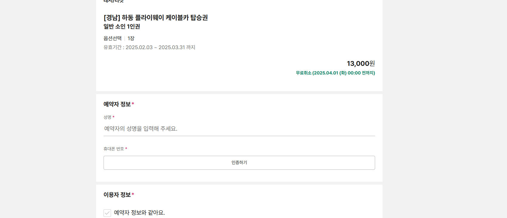 하동 플라이웨이 케이블카를 이용하기 위해서는 예약하시는 것이 좋습니다.