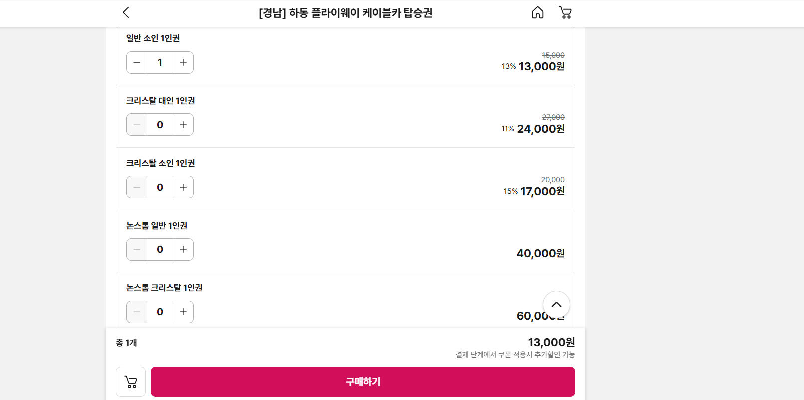 하동 금오산 케이블카의 현장 구매에 대해 다음과 같은 정보를 알려드릴 수 있습니다:
