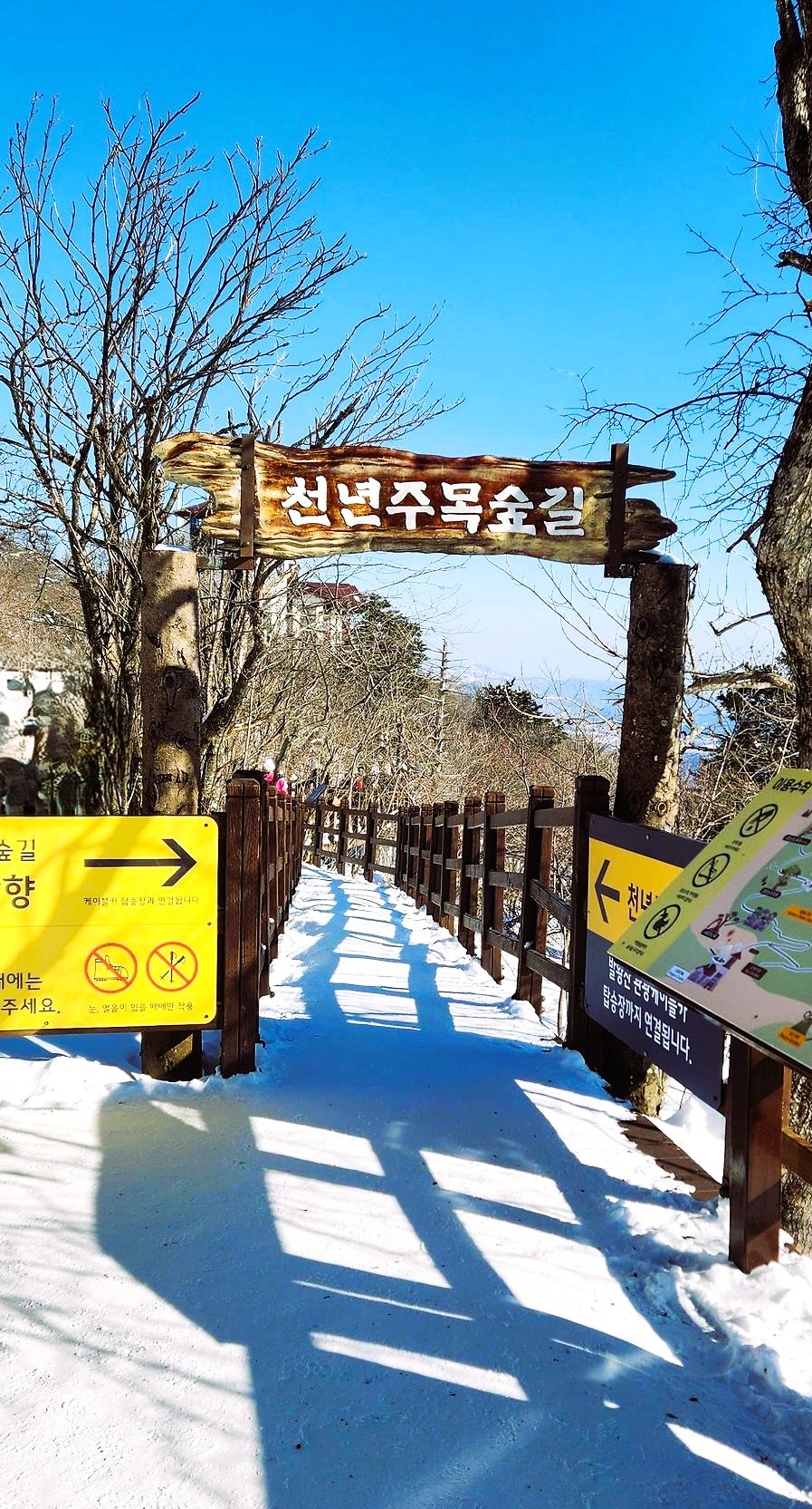천년주목 숲길은 계절마다 다른 매력을 선사합니다. 특히 겨울에는 눈꽃으로 뒤덮인 환상적인 설경을 감상할 수 있어, 마치 겨울왕국에 온 듯한 느낌을 줍니다.