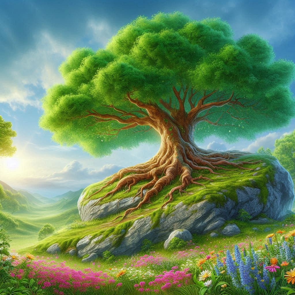 왕발주목: 바위 위로 넓게 뿌리를 뻗은 나무.
