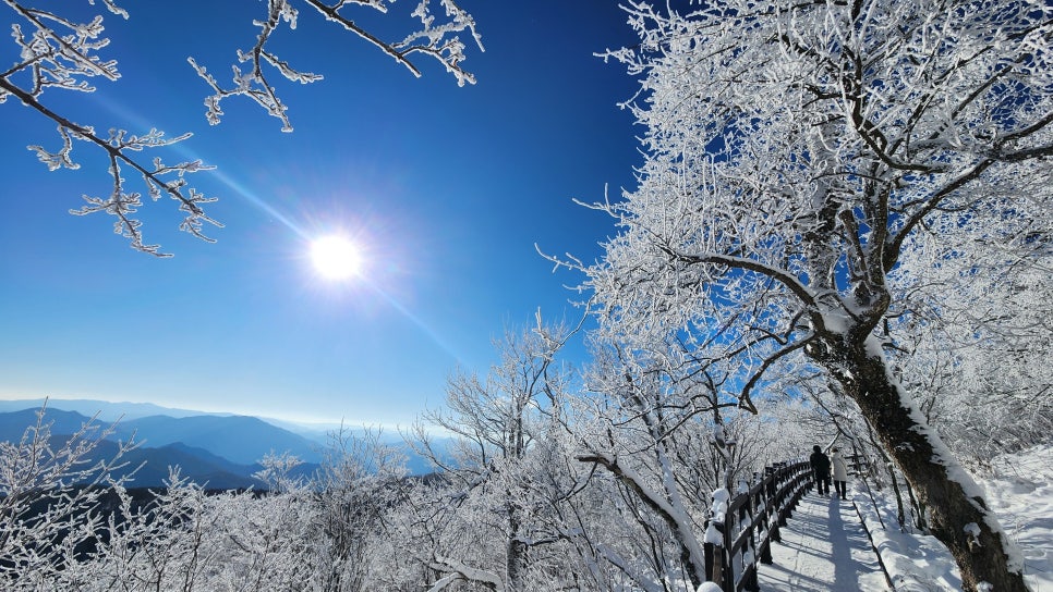 천년주목 숲길은 계절마다 다른 매력을 선사합니다. 특히 겨울에는 눈꽃으로 뒤덮인 환상적인 설경을 감상할 수 있어, 마치 겨울왕국에 온 듯한 느낌을 줍니다.