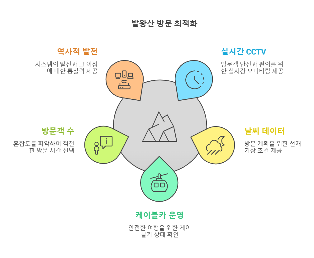 발왕산 CCTV 시스템은 최근 몇 년 사이에 크게 발전했습니다. 초기에는 단순한 감시 목적으로 설치되었지만, 현재는 방문객의 안전과 편의를 위한 필수적인 도구로 자리 잡았습니다.