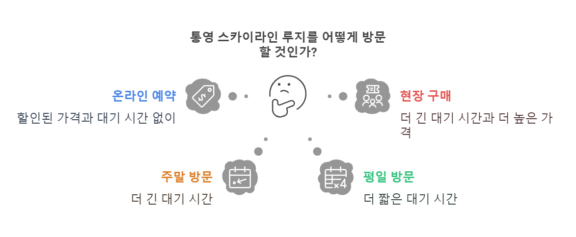 현장 구매: 당일 현장에서도 티켓 구매가 가능하지만, 대기 시간이 길어질 수 있고 온라인 예약보다 가격이 높을 수 있습니다.