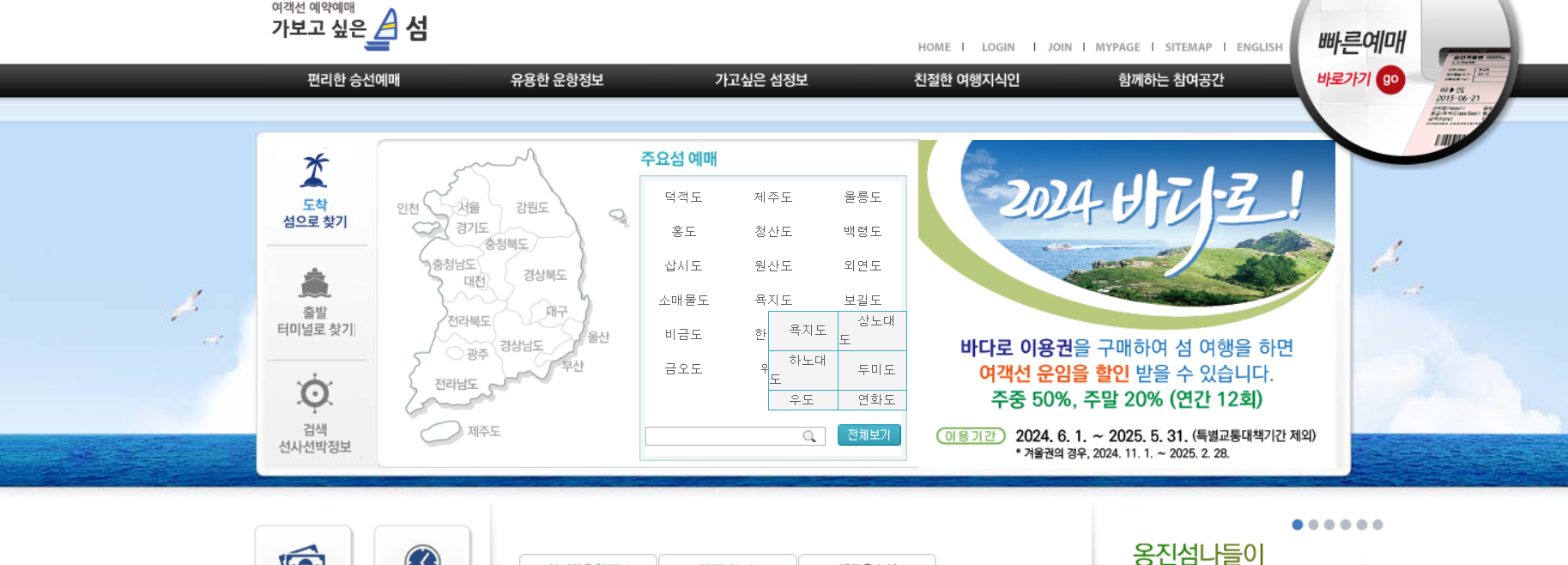 여객선사 공식 홈페이지 이용
