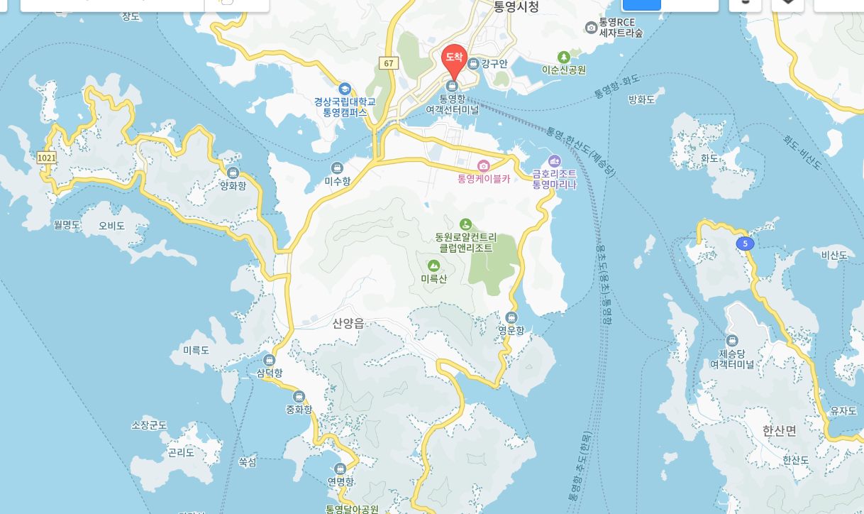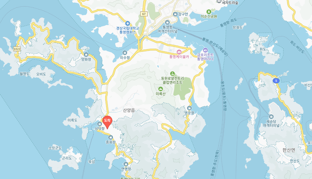 통영항은 가장 대표적인 출발지예요. 여기서 출발하면 약 1시간에서 1시간 30분 정도 걸려요.