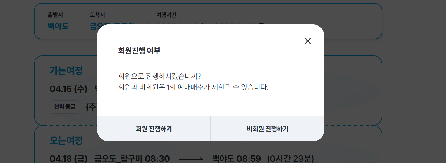 (예매 전 공식 홈페이지나 여객선사에 확인하시기를 권장드립니다.)